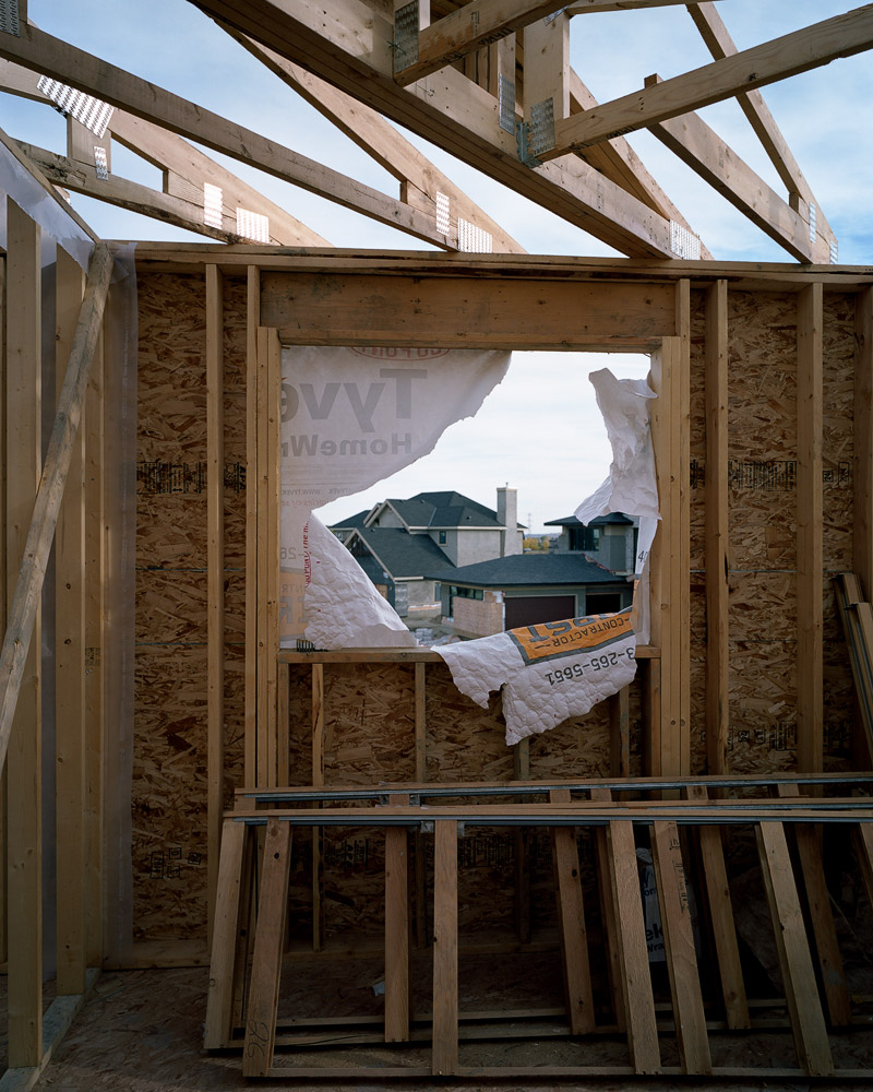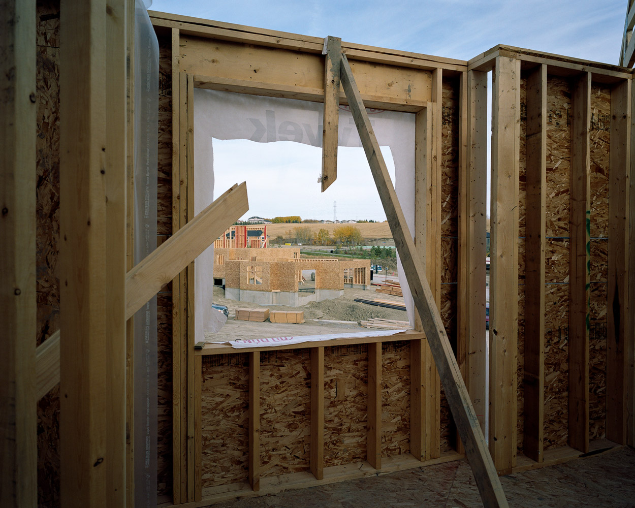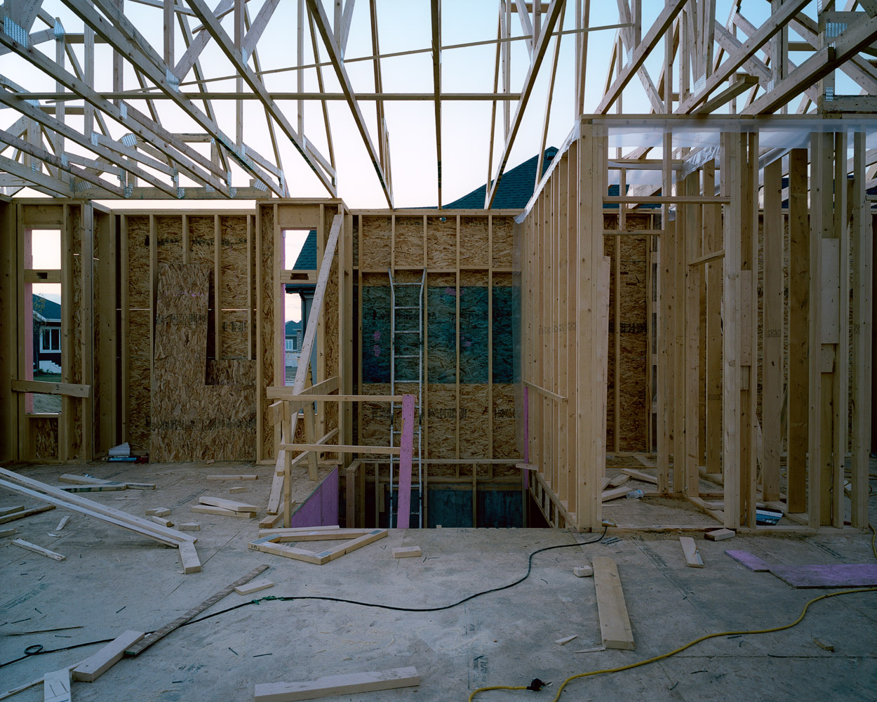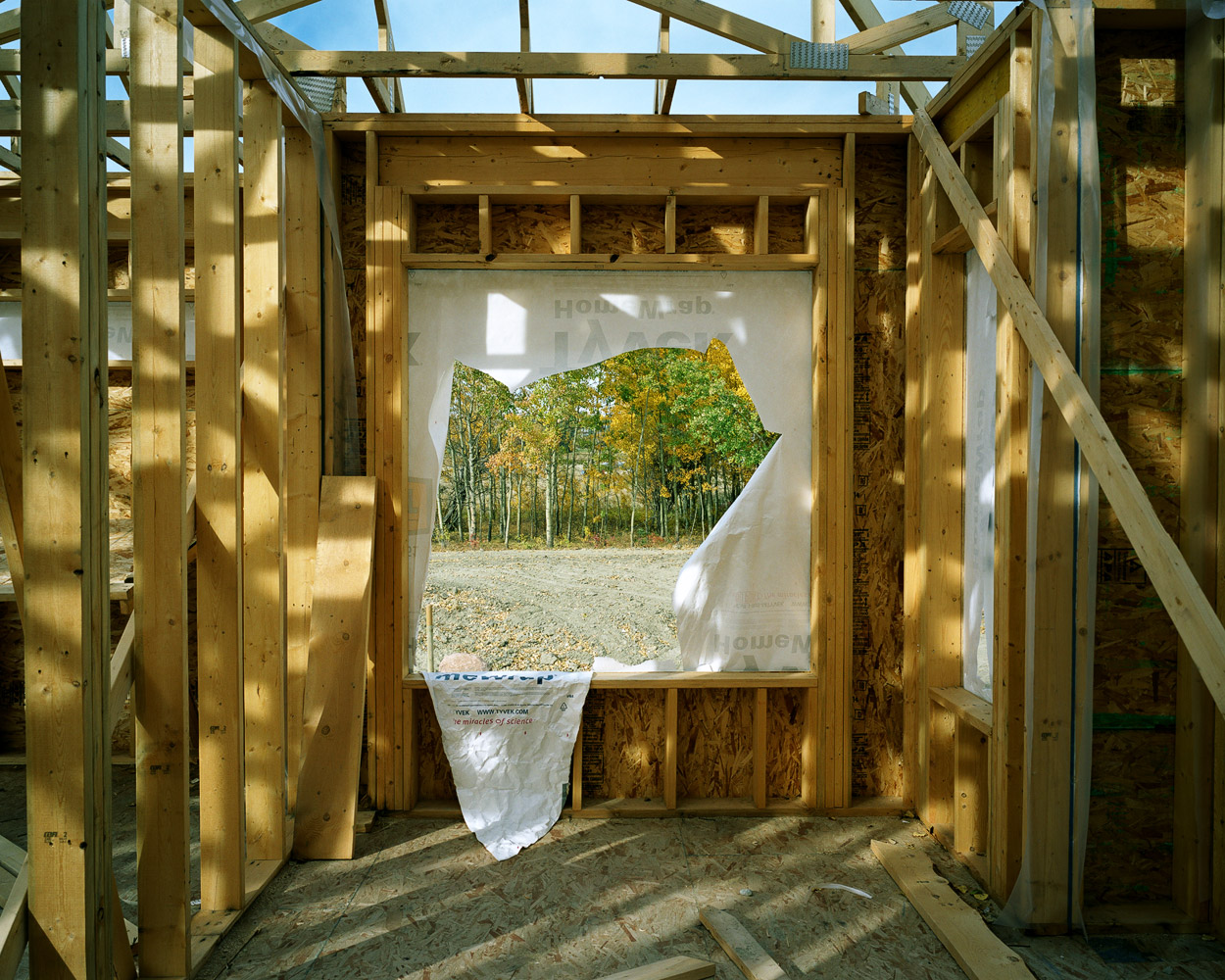 The wood framing stage in the construction of Canadian houses presents an unfolding of space, a partitioning of space that creates space out of space.