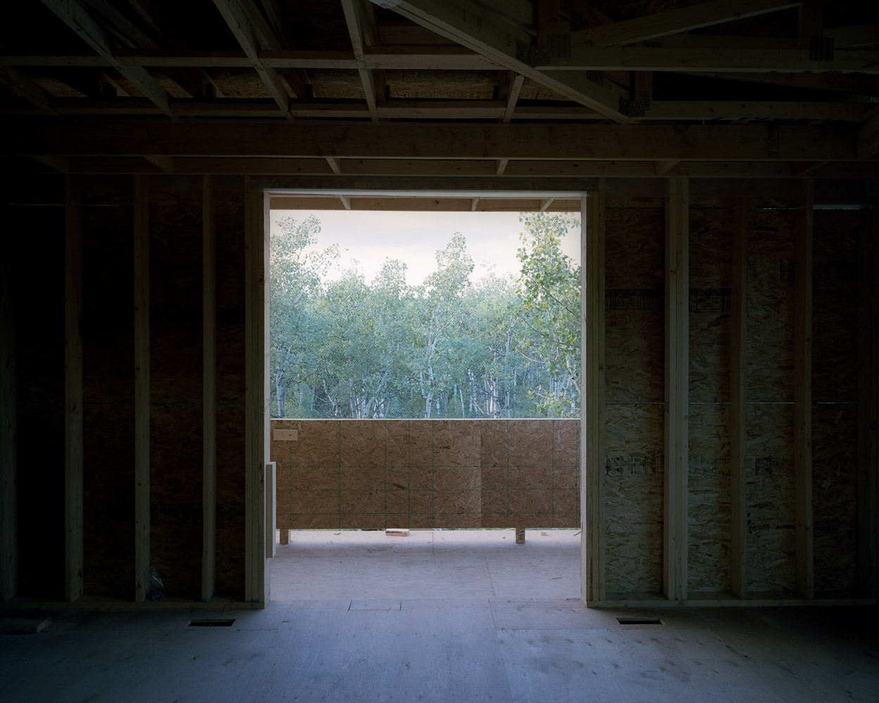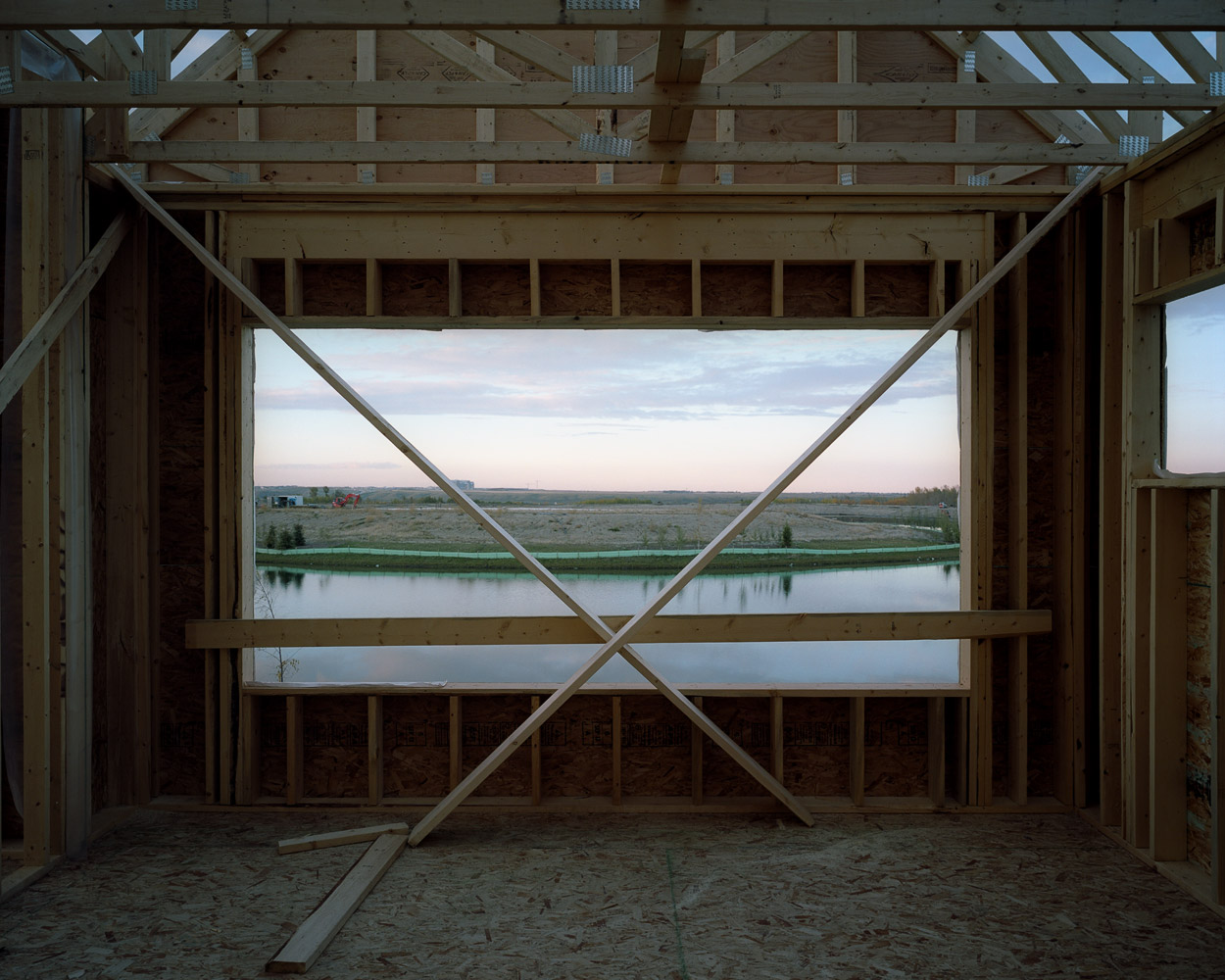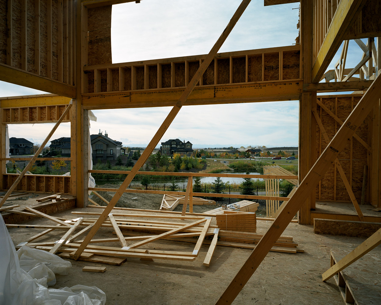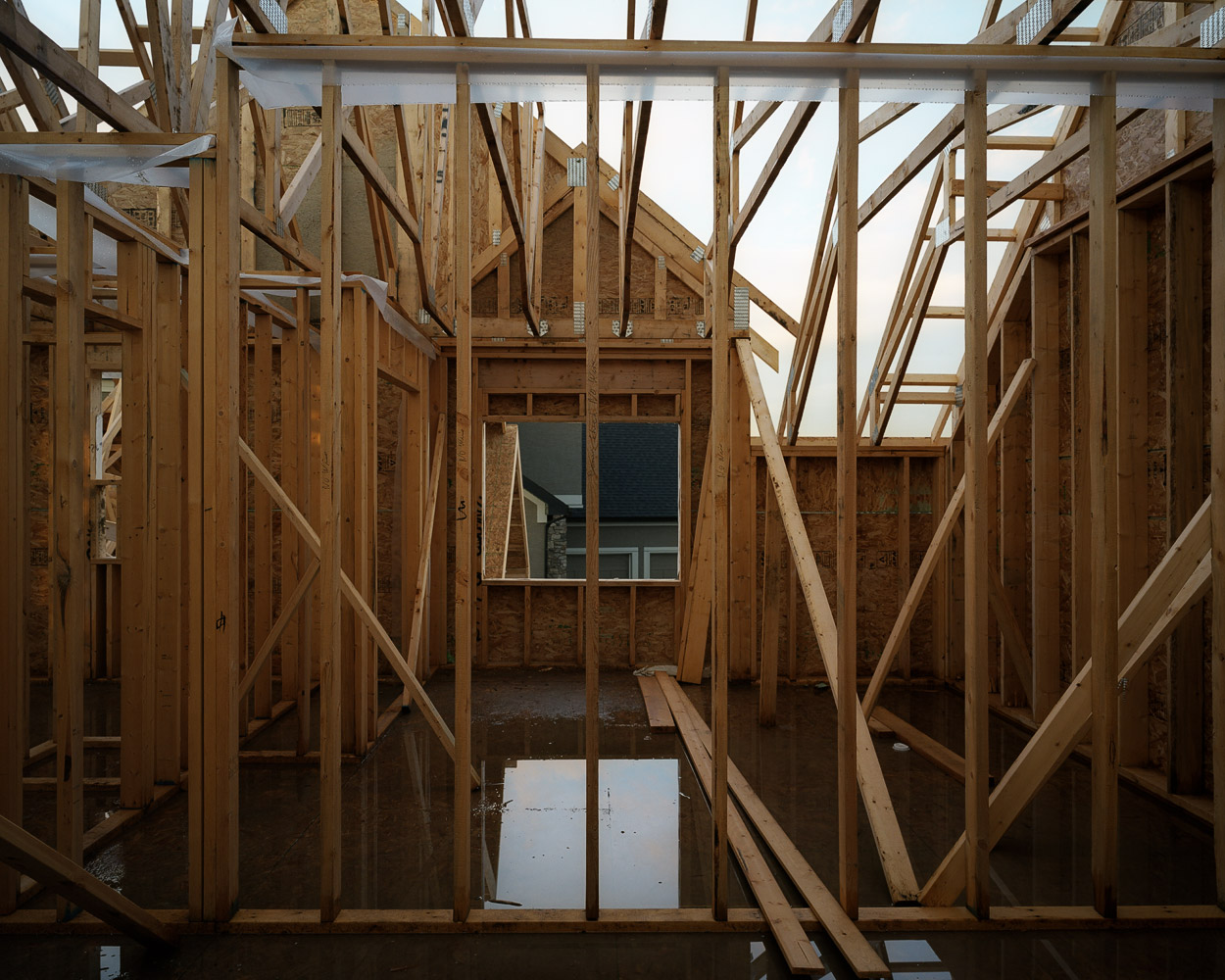 The wood framing stage in the construction of Canadian houses presents an unfolding of space, a partitioning of space that creates space out of space.