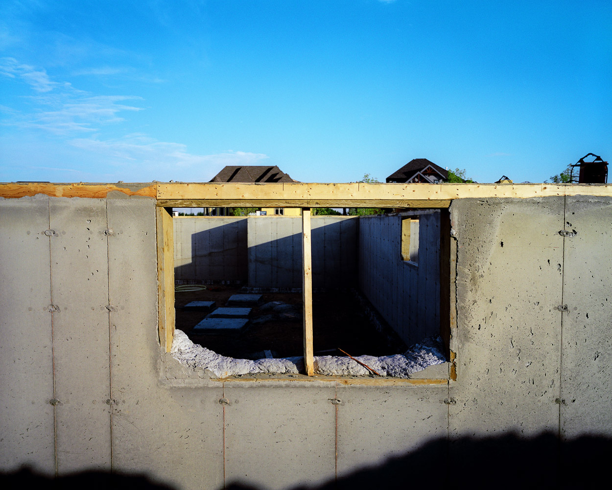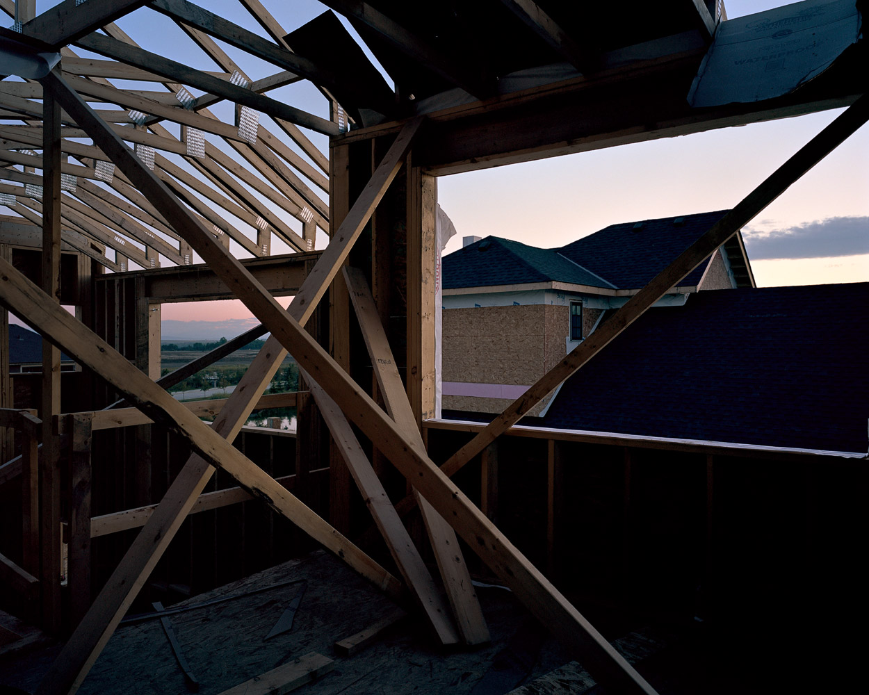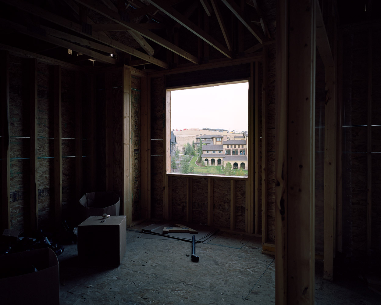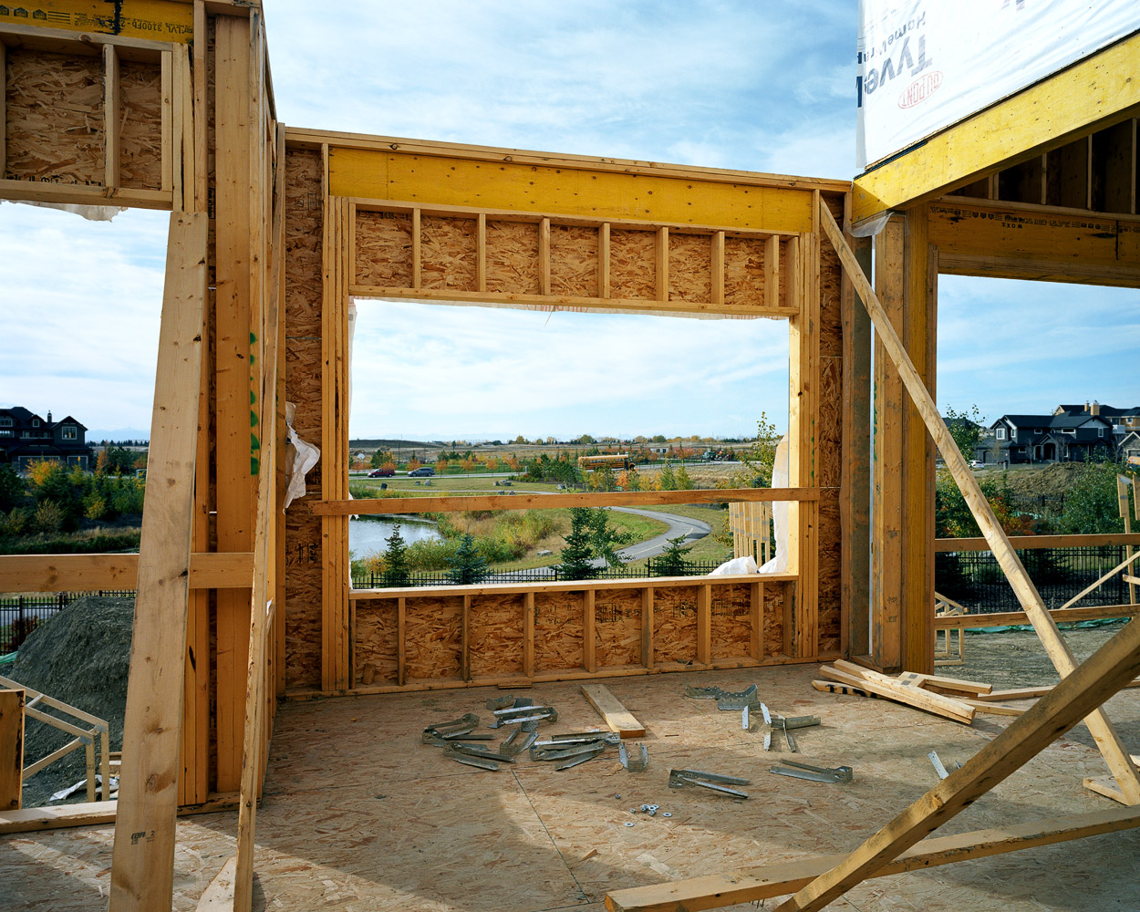The wood framing stage in the construction of Canadian houses presents an unfolding of space, a partitioning of space that creates space out of space.