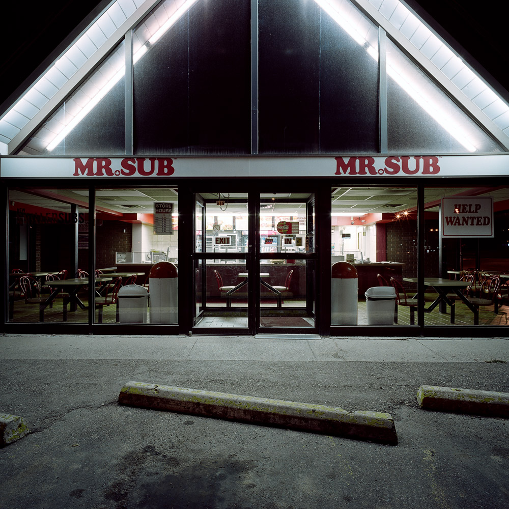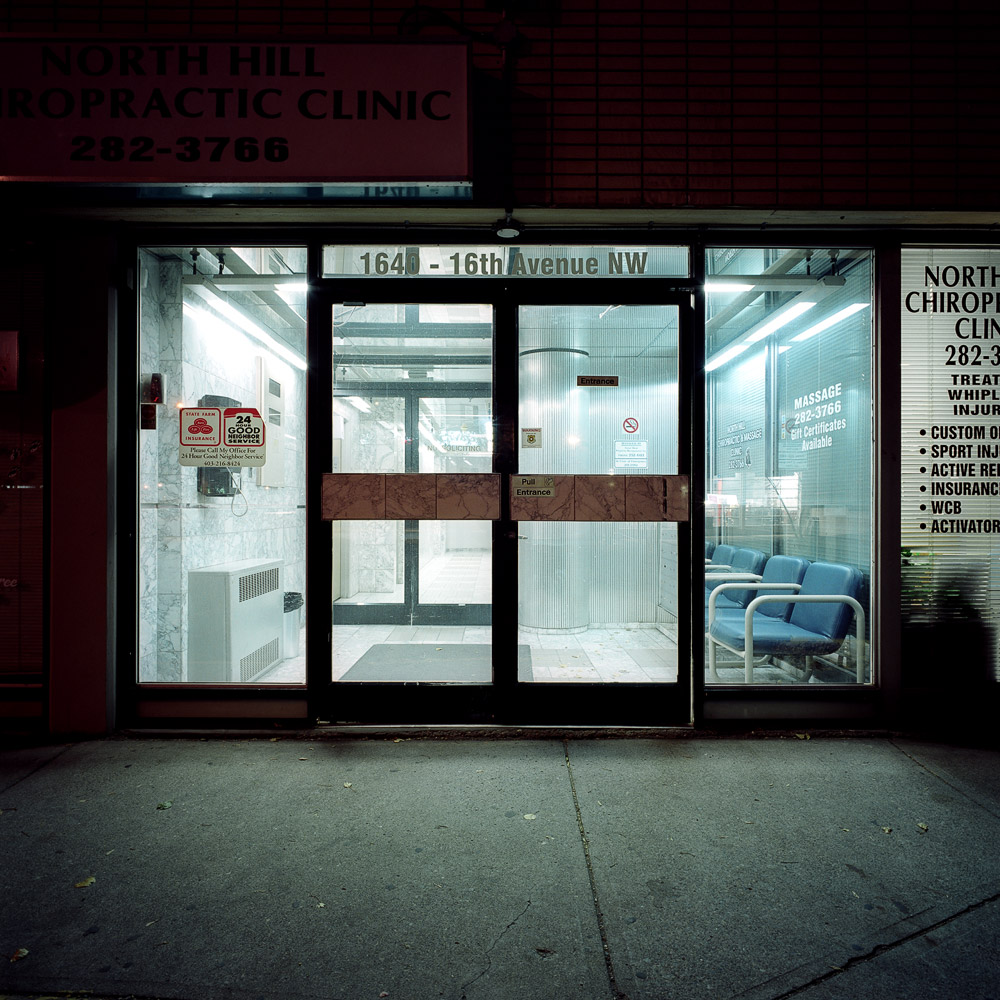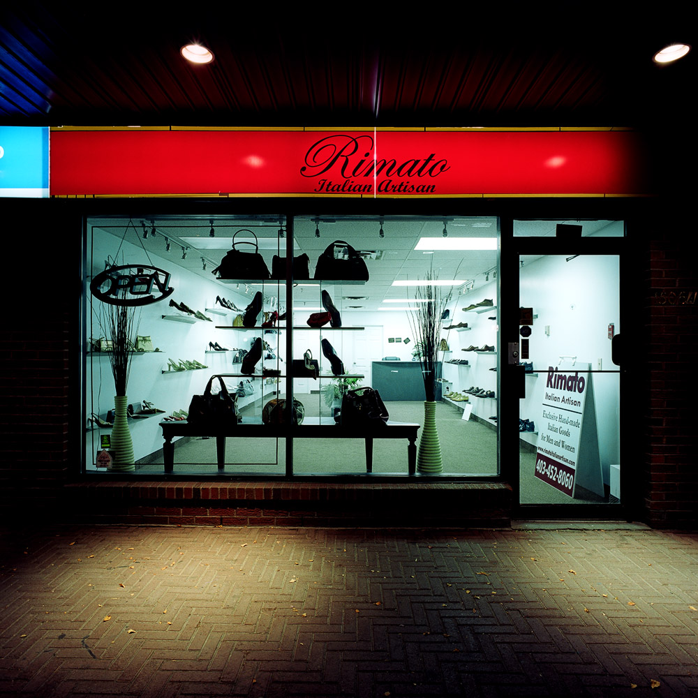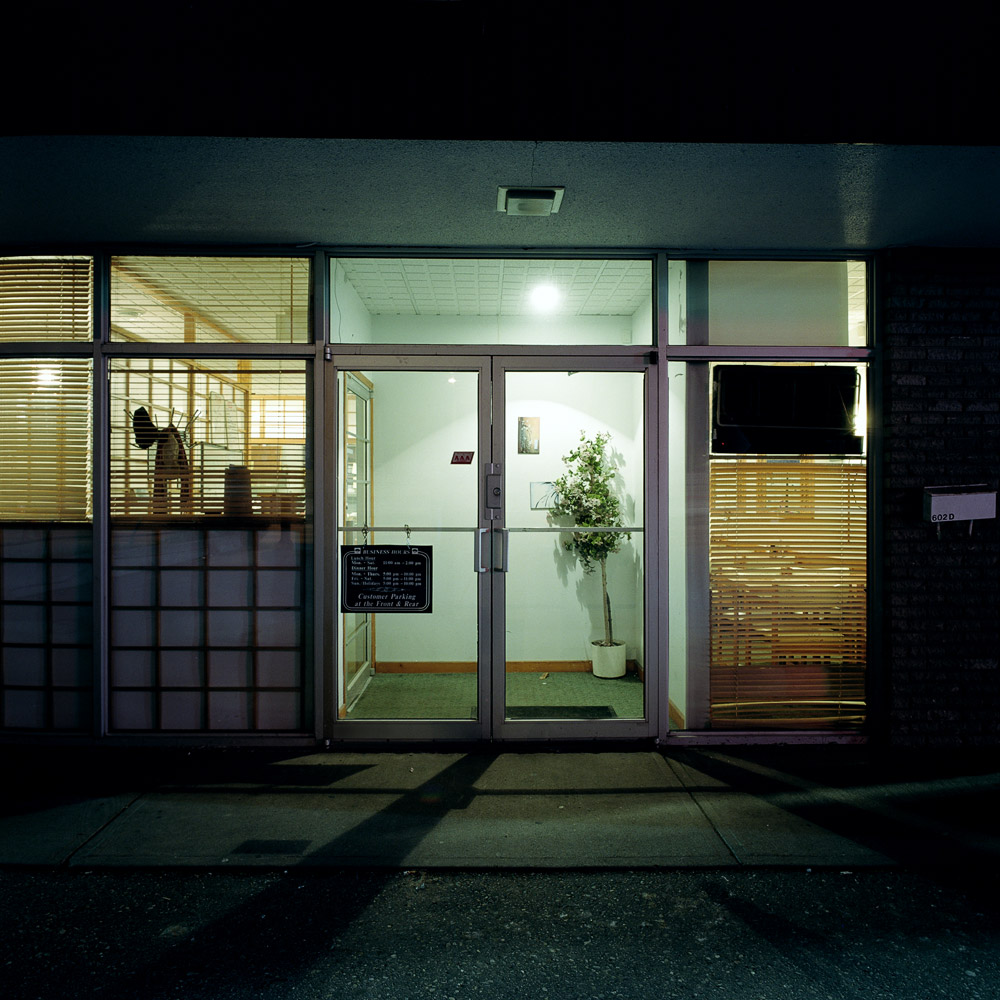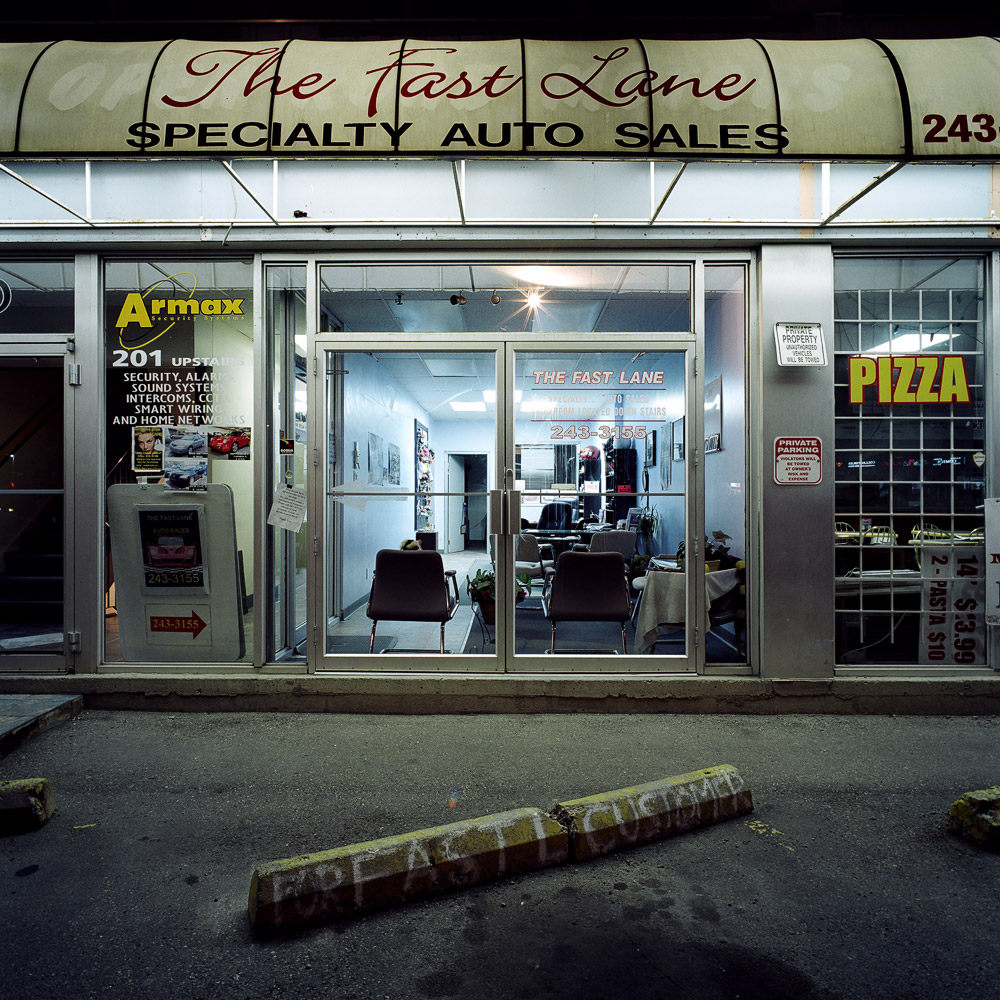 Photographs of these storefronts allow a previously absent viewer to view a representation of these spaces. The physical presence of each storefront has been removed and replaced with a simulation. The visual details that depict each storefront simultaneously signify the lack of its physical presence. The viewer is removed a further step from the promises of presence exhibited by the storefronts, as well as the products and services that the storefronts advertise.